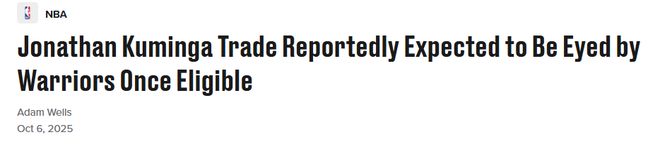 “越来越强烈的预期是,一旦库明加在1月16日获得交易资格,勇士队就会把他推向交易市场,以便在2月6日交易截止日前,看看这位22岁球员能换来怎样的回报。据我所知,经过如此长时间的谈判,双方在谈判桌上的关系无疑已出现裂痕。因此,库明加在‘巴特勒时代’的勇士队中如何定位,将是本赛季前几个月值得关注的核心话题之一。如果库明加像过去那样,难以在勇士队主教练科尔手下获得稳定的角色,那么他的名字注定会成为‘交易季’流言的焦点。”
